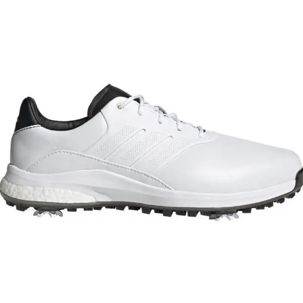 Hit the course in classic style and modern comfort. These adidas golf shoes balance a clean, traditional look with the benefits of modern tech. A combination of Bounce and Boost cushioning energises your every move on the course. The five-cleat outsole ensures each stance is secure. Tee off ready to shave strokes off your game. This product is made with recycled content as part of our ambition to end plastic waste. 20% of pieces used to make the upper are made with minimum 50% recycled content.