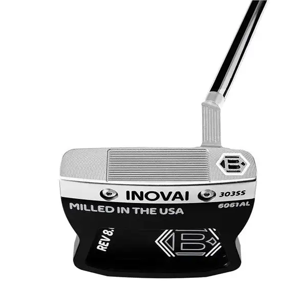The all-new INOVAI 8.0 was designed and engineered by Sam Bettinardi to instill maximum confidence and forgiveness while putting. The 8.0 was created with a 303 Stainless Steel front piece for a solid feel at impact, and a Military Grade 6061 Aluminum body that was designed with defined wings that offer more stability and higher M.O.I numbers. The INOVAI 8.0 Slant hasย quarter toe hang, and is the perfect option for players with a slight-to-moderate arc in their putting stroke. Precisely milled to 358 grams and finished in a gorgeous two-tone Stealth Black and Diamond Blast appearance, the all-new 8.0 offers players the perfect visual cues and optics for a clean appearance and enhanced alignment while framing the ball perfectly at address.
