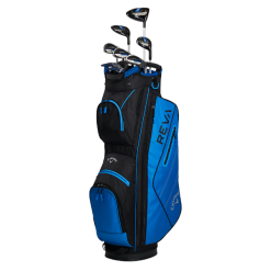 The new REVA 8-Piece Complete Set from Callaway, the #1 brand for womenโs equipment, is designed with premium performance in mind. This complete offering is engineered for women of all skill levels who want to increase their distance, hit great shots, and enjoy the game more than ever before. This set includes: Driver, 5 Wood, 6 Hybrid, 7 and 9 Irons, Sand Wedge, Putter, Cart Bag, and (4) Headcovers.