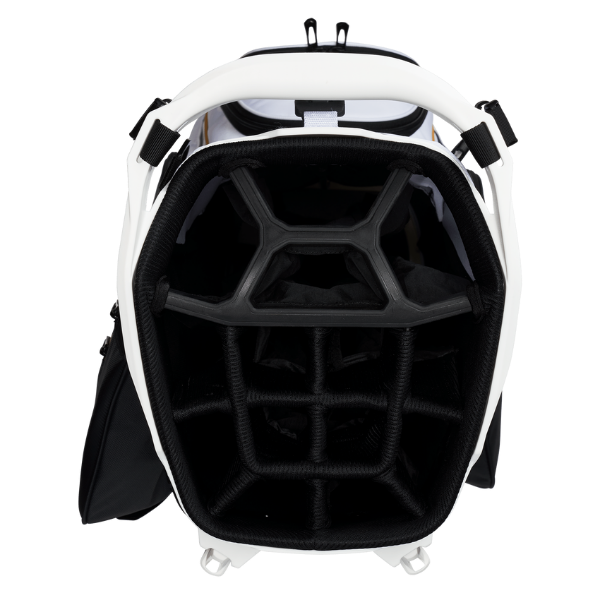 Fairway 14 offers the best of both worlds, combining the organization and size of a cart bag with the portability of a stand bag, and now integrates easily with most pushcarts.