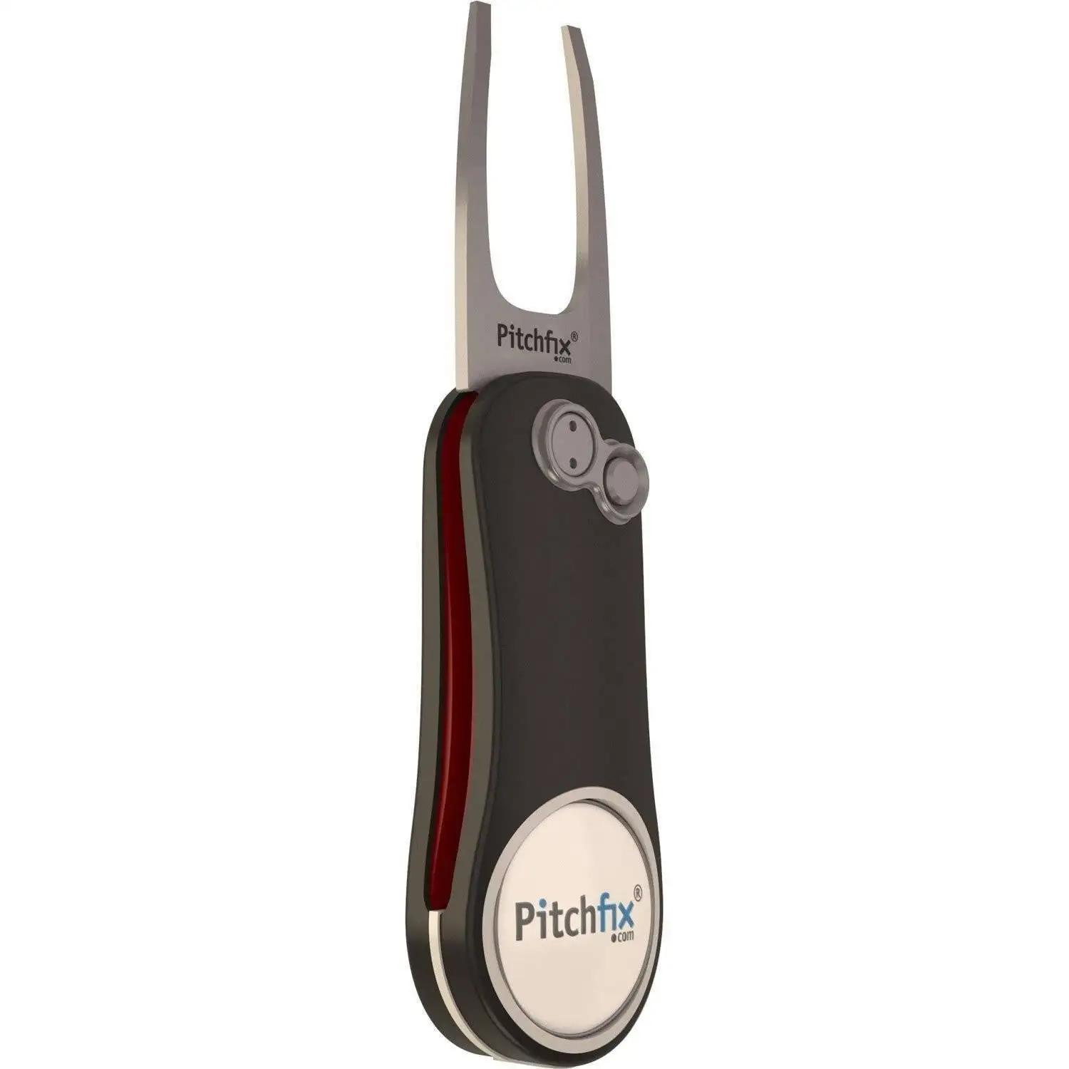 The Hybrid 2.0 is aย great multi-use tool that marks your place, sharpens your golf pencil and fixes divots.