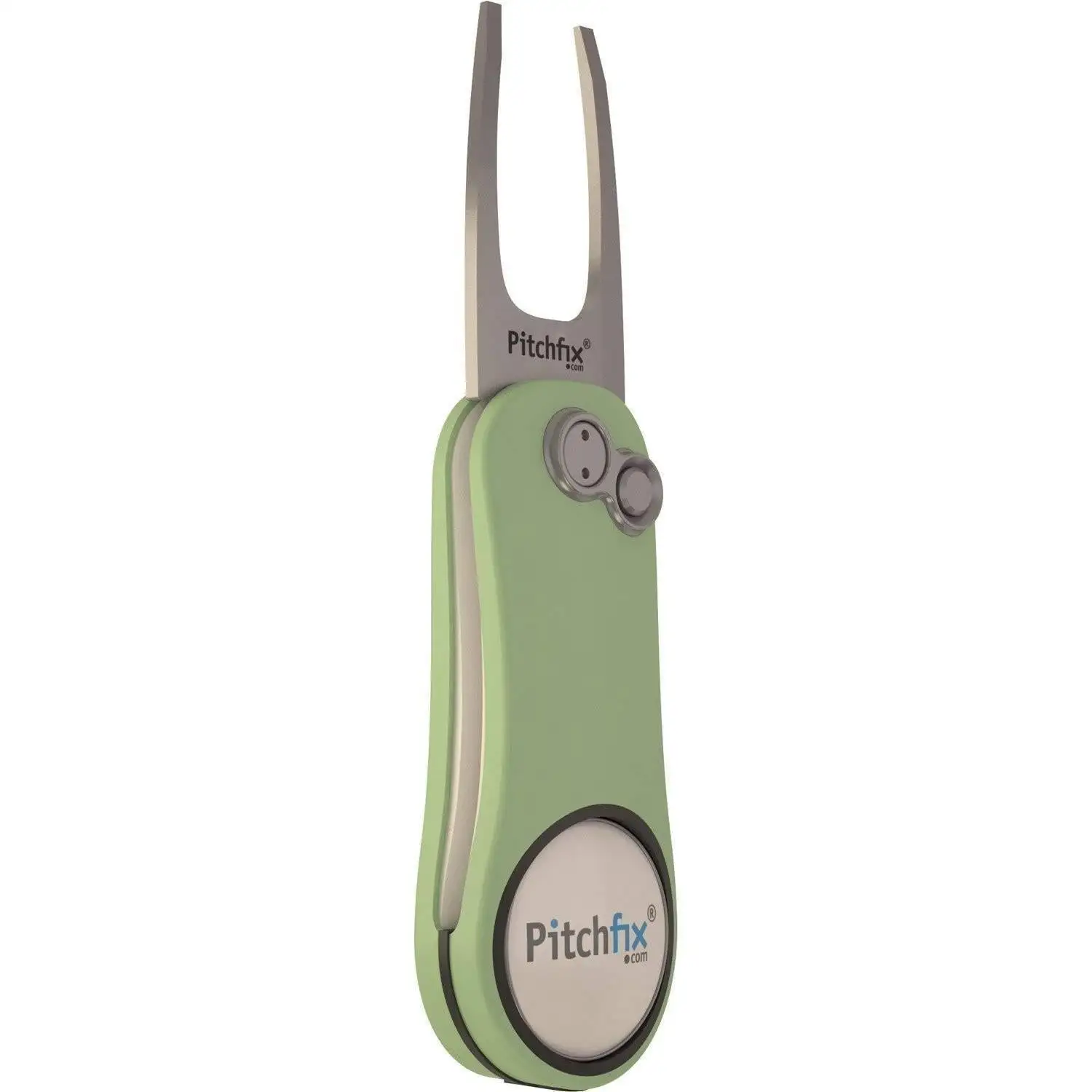 It is a lightweight switchblade divot tool made from 2 aluminum sheets with great feeling ABS rubberized handles.