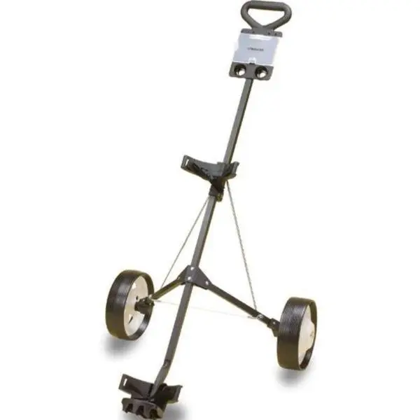 Lightweight and sturdy, the all-steel Lightweight Steel Deluxe Push Cart makes it easy to carry your golf bag around the course. Featuring a contoured bottom and an adjustable bag strap to accommodate large and small bags alike, the cart opens and closes easily in one motion. Equipped with a waterproof scorecard holder and wide wheels for stability, the cart can handle anything. The wheels also feature a clip-on mechanism for easy removal and the cart folds in half for compact storage