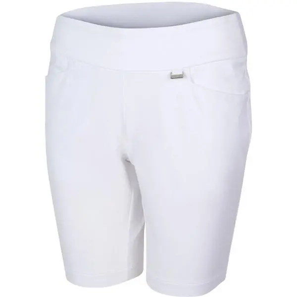 The GN Womenโs Pull-On Stretch Shorts are made to flex with your body. A Microfiber Polyester/Spandex blend, 4-way stretch, 19โ length, tummy control, invisible zipper back pocket and Play Dry stretch pocketing keep you covered so you can focus on your game. Pair them with one of our polos for a complete look.