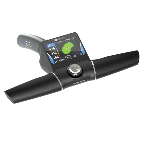The M5 GPS DHC adds Downhill Control, an electronic parking brake and All terrain DHC wheels to the wideโranging features found on the compactโfolding M5 GPS โSmart Cartโ.ย Includes FREE ACCESSORY STATION (worth $19.99)