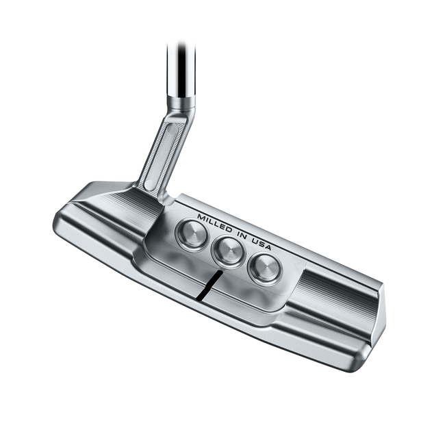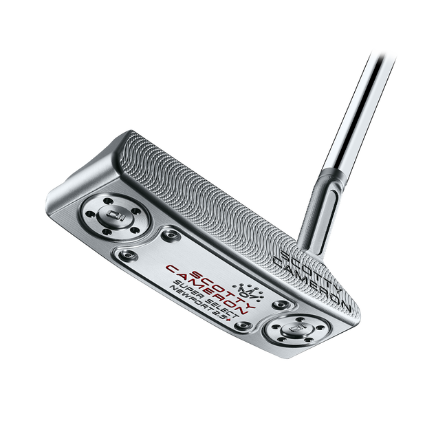 Milled in USA from 303 stainless steel with a solid face and the lineโs dual-milled face technology, the Newport 2.5 Plus has an integrated 6061 aircraft grade aluminum sole plate, anodized clear and engraved with the lineโs graphics. A milled flange sight line provides clean alignment, while customizable stainless steel sole weights provide balance. The putter includes the lineโs new shaft band, headcover and textured Pistolini Plus grip. A left-handed Super Select Newport 2.5 Plus model is also available.