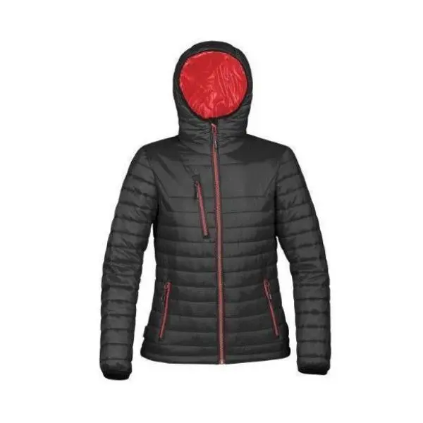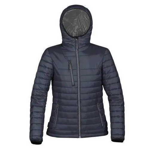 Quilted comfort from hem to hood. Ultra-lightweight with a sleek snug fit and heat-trapping polyfill insulation. Elasticized cuffs and attached hood help retain core warmth, while an outer shell keeps you dry.