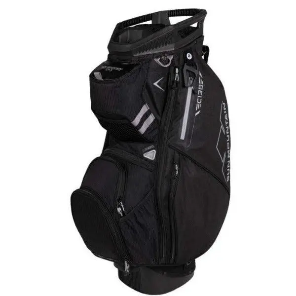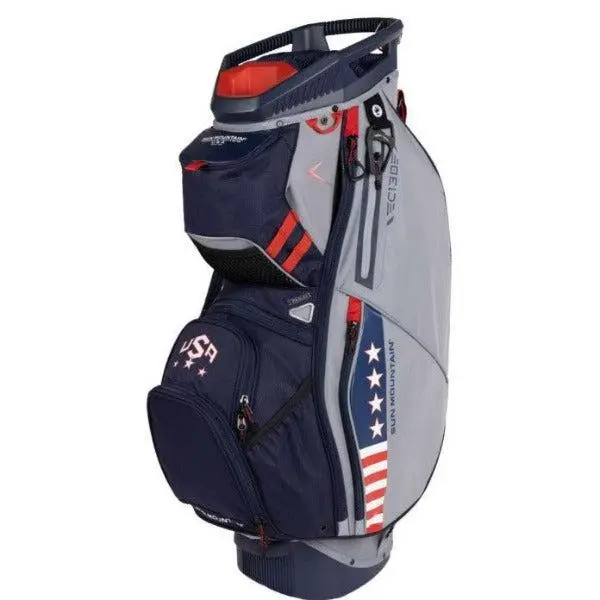 Updated for 2023, the C-130, Sun Mountainโs best-selling cart bag, was created to work optimally on a cart. All features are designed with cart use in mind, starting with the reverse orientation top with three utility handles, cart bumpers, the Smart Strap System and a convenient, roomy, velour-lined rangefinder pocket with a magnetic-closure. In addition, all pockets are forward-facing and accessible when the bag is on a cart. For 2023, Sun Mountain added an additional velour-lined pocket and streamlined the top.